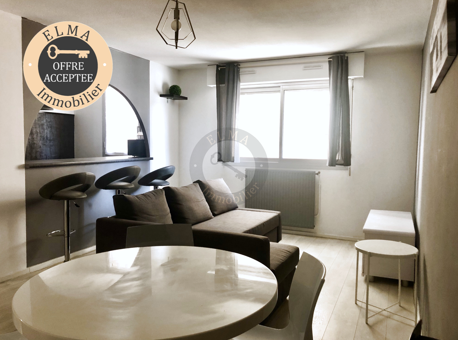 Cet agréable appartement se compose d'une entrée avec placard, d'un séjour d'environ 20m², d'une cuisine équipée d'environ 9 m², avec de nombreux rangements, semi-ouverte grâce à son bar donnant sur le séjour.