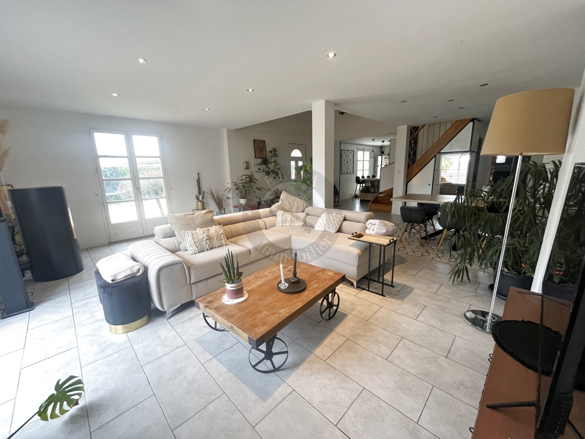 Magnifique maison en pierre d'environ 136m², de type 6, sur une parcelle de 766m², avec garage et piscine, dans un environnement calme, proche des commodités.
